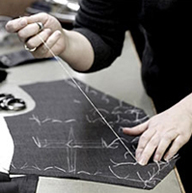 一套凱利易紳正裝,且體師要進行20—30個數(shù)據(jù)的測量,在做的過程中,還要隨時找到身上的細微變化,以確保數(shù)據(jù)準確無誤,并留下相關的影像資料備用.然后工藝師核對相關數(shù)據(jù),用紙板打出紙樣,進行面料的裁剪。